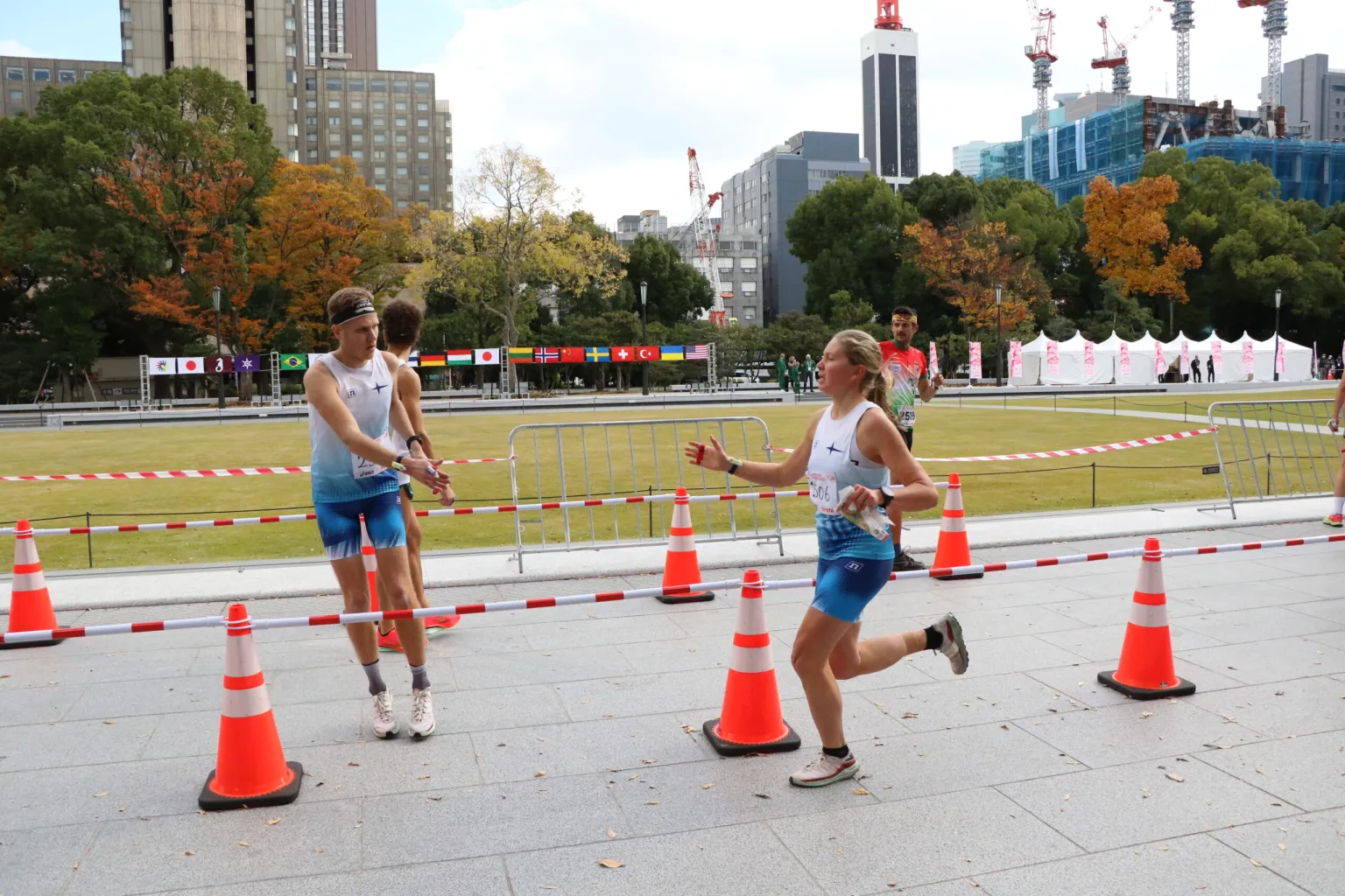 Hibiya Parkissa suomalaiset aloittivat toisen kisapäivänsä parisprinttiviestillä. Juuso Toivonen ja Sara-Elise Ruokonen lähtivät jahtaamaan mitalisijaa edellisen päivän sprinttikilpailun karvaan pettymyksen jälkeen.